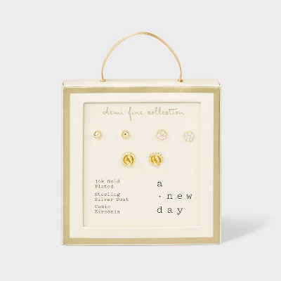 Women's Fashion Trio Crystal Round Stud Earring Set 3pc - A New Day™ Silver: Nickel-Free Metal, Post Closure