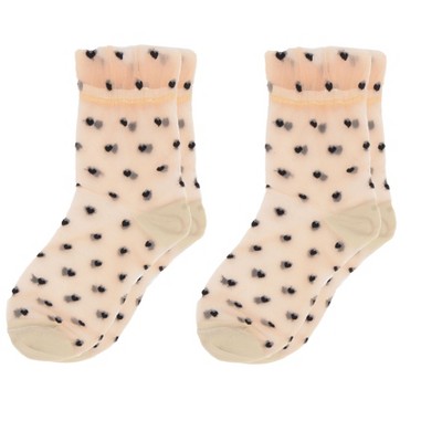Anna-Kaci Women's Sheer Crew Socks with Flocked Heart Pattern and Reinforced Toe and Heel 2-Pack