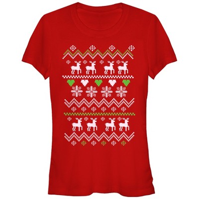 Juniors Womens Lost Gods Ugly Christmas Reindeer & Hearts T-Shirt