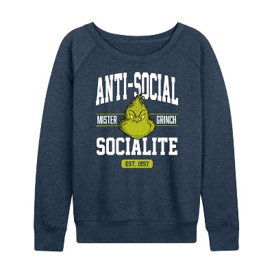 Women's - The Grinch - The Grinch Never Not Grinchy Lightweight French Terry Wide Neck Long Sleeve Graphic Shirt