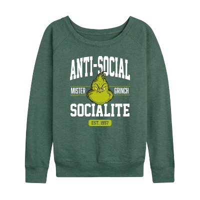 Women's - The Grinch - Christmas Lightweight French Terry Wide Neck Long Sleeve Graphic Shirt