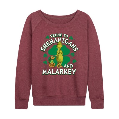 Women's - The Grinch - How The Grinch Stole Christmas Lightweight French Terry Wide Neck Long Sleeve Graphic Shirt