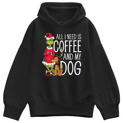 Women's - The Grinch - All Need Is Coffee And My Dog Oversized Fleece Hoodie Sweatshirt