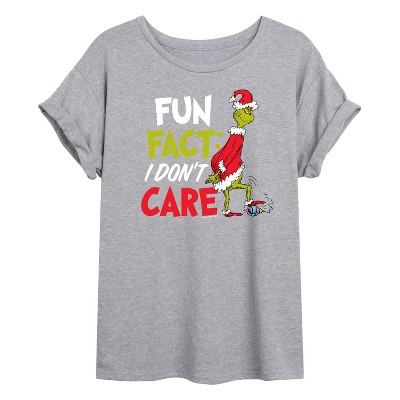 Women's - The Grinch - Fun Fact I Don't Care Oversized Graphic T-Shirt