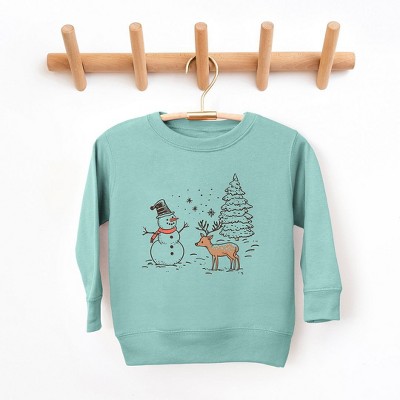 The Juniper Shop Deer Snowman Scene Youth Ultra-Soft Graphic Sweatshirt
