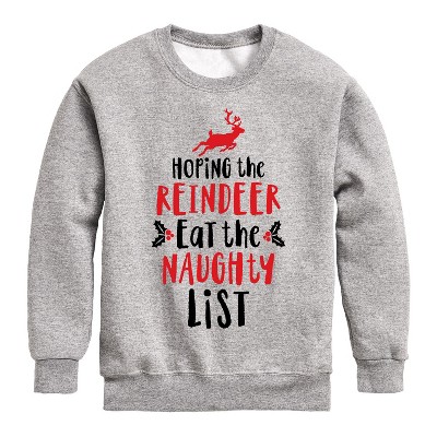 Boys' - Instant Message - Christmas Hoping Reindeer Eat Naughty List Graphic Long Sleeve Fleece Sweatshirt