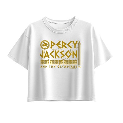 Girls' Percy Jackson Percy Jackson Logo Short Sleeve Boxy Graphic T-Shirt - White - Small