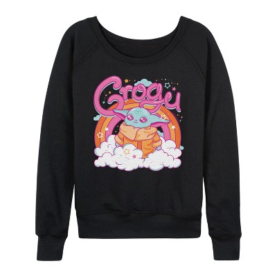 Women's - Star Wars - The Mandalorian Grogu Star Wars Lightweight French Terry Wide Neck Long Sleeve Graphic Shirt