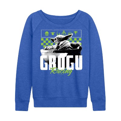 Women's - Star Wars - The Mandalorian Grogu Racing Jersey Lightweight French Terry Wide Neck Long Sleeve Graphic Shirt