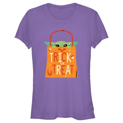 Juniors Womens Star Wars The Mandalorian Halloween Grogu Trick or Treat T-Shirt