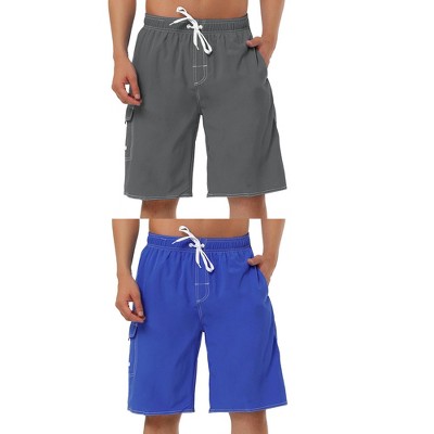 Lars Amadeus Men's Solid Color Elastic Waist Summer Pool Swimwear Shorts 2 Packs