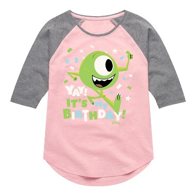 Girls' - Disney - Mike Yay It's My Birthday Shirt Tail Raglan Graphic T-shirt