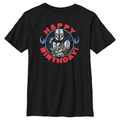 Boy's Star Wars: The Mandalorian Grogu and Din Djarin Happy Birthday T-Shirt