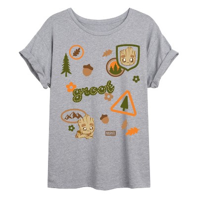 Women's - Guardians Of The Galaxy - Groot Nature Badges Oversized Graphic T-Shirt