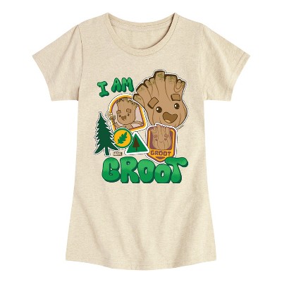 Girls' - Marvel - Guardians of the Galaxy Groot Sticker Fitted Short Sleeve Graphic T-Shirt