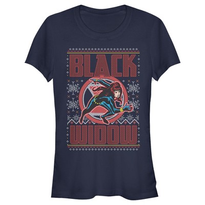 Juniors Womens Marvel Ugly Christmas Black Widow Snow T-Shirt