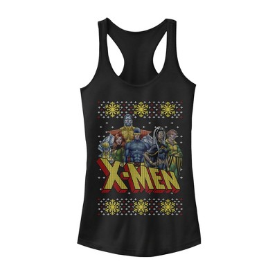 Juniors Womens Marvel Ugly Christmas X-Men Group Racerback Tank Top