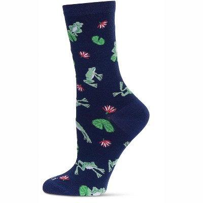 Memoi Women's Frogs Bamboo Crew Socks Navy 9-11