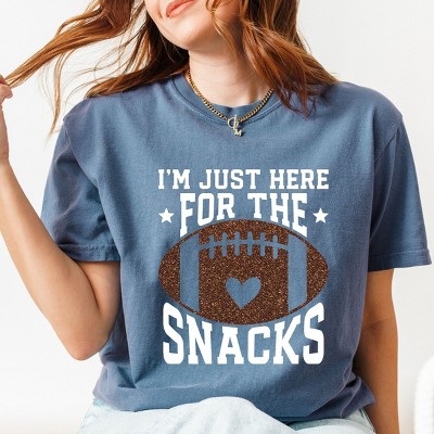 I'm Just Here For The Snacks Football Glitter - Women's Garment Dyed Graphic T-Shirt