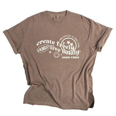 S.W.Smiley Create Freely Live Boldly - Women's Garment Dyed Graphic T-Shirt