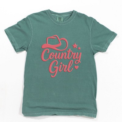 Country Girl Hat Puff Print - Womens Garment Dyed Graphic T-Shirt