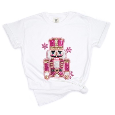 Pink Snowflake Nutcracker Patchwork Print - Women's Garment Dyed Graphic T-Shirt