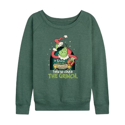 Women's - The Grinch - The Grinch If Santa Could Do It Lightweight French Terry Wide Neck Long Sleeve Graphic Shirt