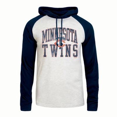 MLB Minnesota Twins Men's Ash Hooded Long Sleeve T-Shirt