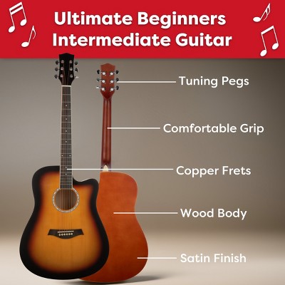 GLARRY Full Size Acoustic Electric Bass Guitar Beginner Kit w/Inbuilt Tuner, Bag, Strap, Picks, Strings