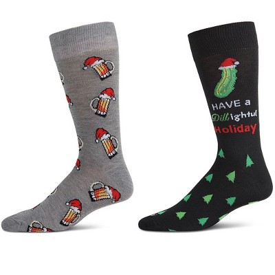 MeMoi 2 Pair Men's Rayon Blend "Holiday Cheer" Christmas Novelty Crew Socks Gray-Black 10-13