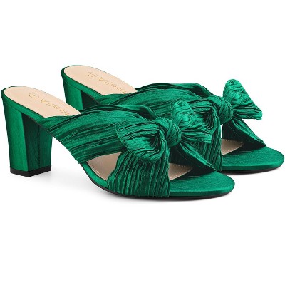 BLISSFUL STEP Women's Slip On Bow Chunky Heel Slide Sandals