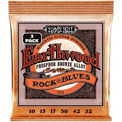 Ernie Ball Earthwood Rock and Blues Phosphor Bronze Acoustic Guitar Strings 3 Pack 10 - 52