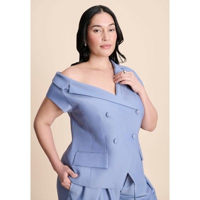 ELOQUII Asym Neckline Short Sleeve Blazer