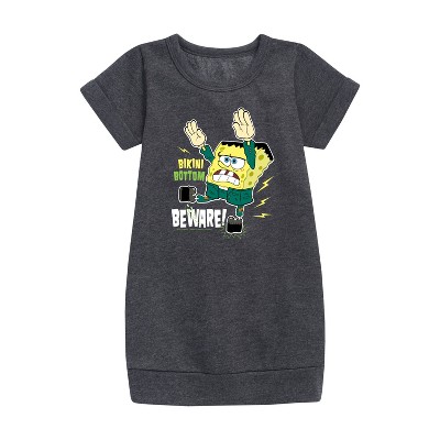Girls' - SpongeBob SquarePants - Bikini Bottom Beware Graphic Short Sleeve Fleece Dress