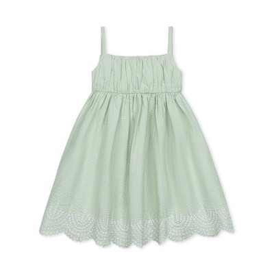Hope & Henry Girls' Organic Sleeveless Ruched Party Dress with Embroidered Hem, Kids