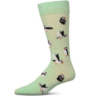 Memoi Men's Puffin Birds Rayon from Bamboo Crew Socks Mint 10-13