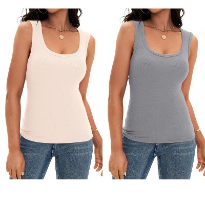 ATHLECHIC Women's Scoop Neck Ribbed Wide Strap Sleeveless Workout Basic Sport Tank Tops 2 Packs