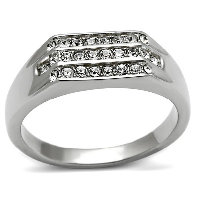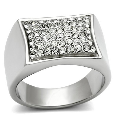 Slickblue Polished Stainless Steel Ring with Clear Synthetic Crystals, Men’s Pave Style Ring, No Plating, Sizes 11-13