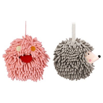 REGALWOVEN Fuzzy Cute Cartoon Decorative Hand Drying Hanging Ball Hand Towels 7" x 7" 2 Pcs