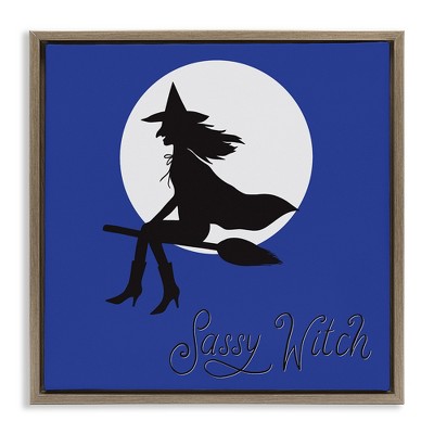 Stupell Industries Sassy Witch & Full Moon Floating Frame Canvas Art, Brown, 18" x 18"