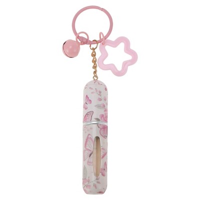 Unique Bargains 5ml Butterfly Flower Pattern Portable Perfume Spray Bottle Keychain Pink White 1 Pc