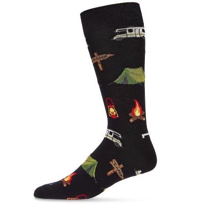 Memoi Men's Happy Camper Bamboo Blend Novelty Crew Socks