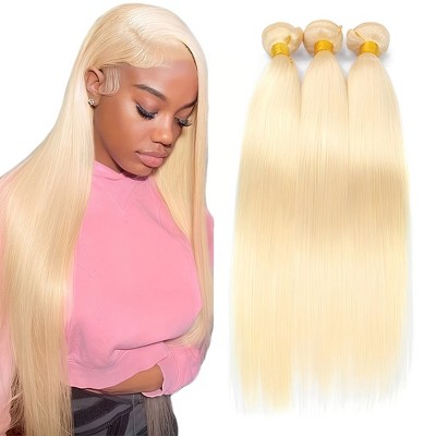 Jessie's Wig 12-28 Inch Blonde Human Hair Bundles Straight 95g For Thin Hair Straight #613 Bleach Blonde 1Pcs/Pack