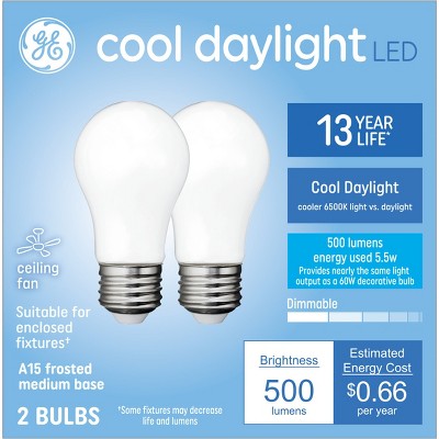 GE 2pk 60W A15 LED Ceiling Fan Light Bulbs Cool Daylight