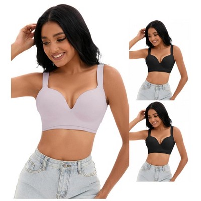 Allegra K Women's Wirefree Push Up Workout Sleep Comfort Sports Bras 2 Packs