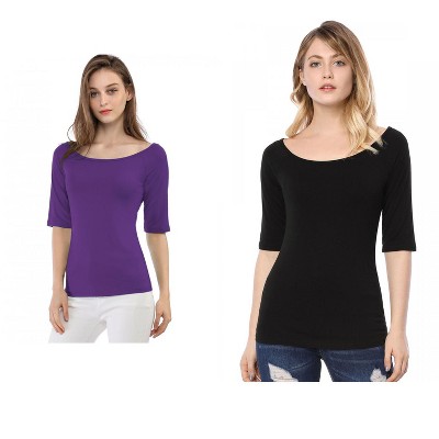 Allegra K Women's Half Sleeves Scoop Neck Fitted Layering Soft T-Shirt 2 Packs