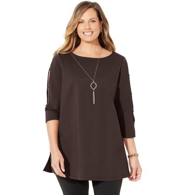 Jessica London Stretch Knit Flutter Sleeve Tunic