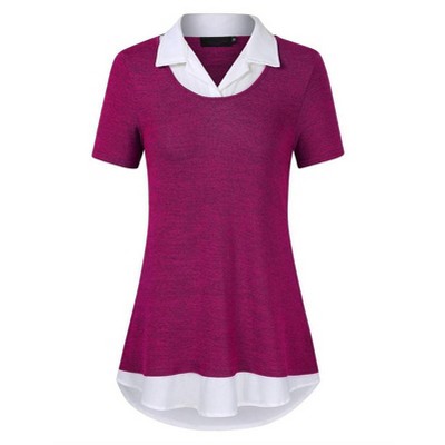 Women's Linen Half-Sleeve Shirt Loose Fit V-Neck Button Front Casual Blouse
