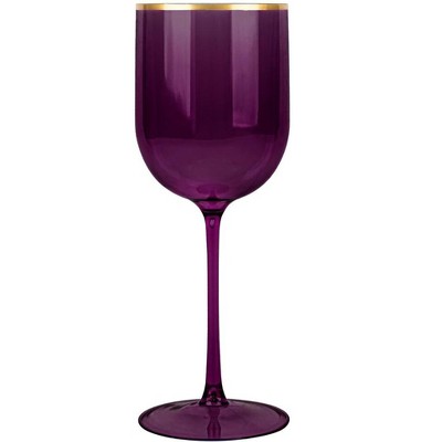 Posh Setting 12 oz Pink with gold rim Plastic Disposable Stemmed Wine Cup - 5 Pack