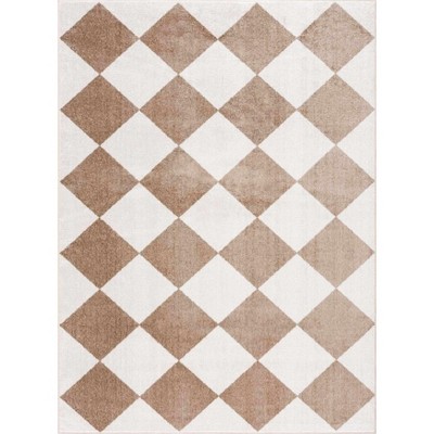 Hauteloom Ulric Light Brown Diamond Washable Area Rug
